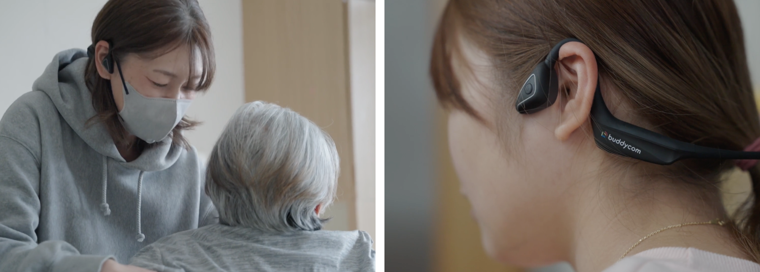 軟骨伝導ヘッドセットの「Buddycom Open」も介護現場には最適でした。
