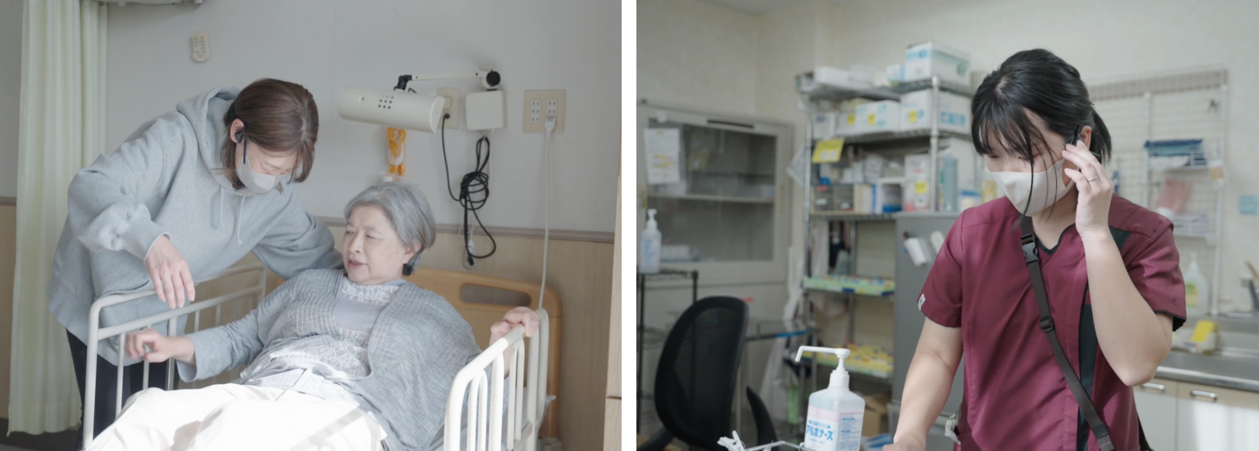 - 入浴介助など手が離せない場面でも、その場から呼びかけられるようになった