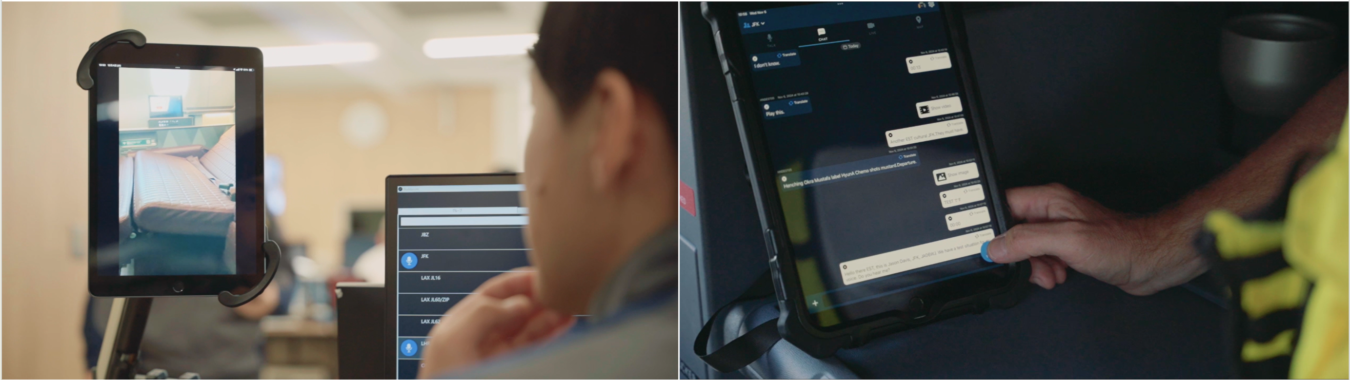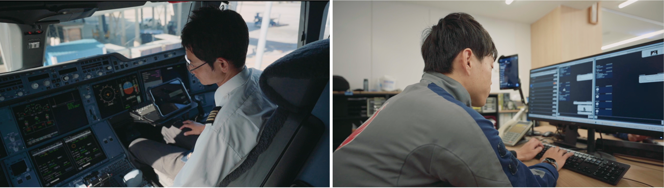 また、機材の不具合が発生した際は言葉や画像では伝えにくいため、映像で配信しながら会話することで、現場の整備士と日本のサポート部門とが正確に情報を共有し、対応することができています。