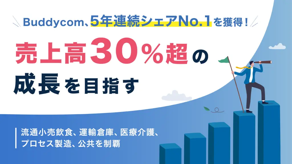 Buddycom、5年連続シェアNo.1を獲得!今後も売上高30%超の成長を目指す~流通小売飲食、運輸倉庫、医療介護、プロセス製造、公共を制覇~