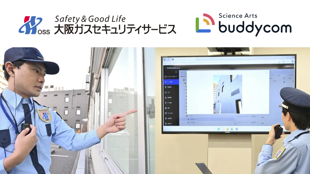 株式会社サイエンスアーツ(所在地:東京都渋谷区、代表取締役社長:平岡 秀一、以下「サイエンスアーツ」)は、フロントラインワーカーをつなげるライブコミュニケーションプラットフォーム「Buddycom(バディコム)」が、大阪ガスセキュリティサービス株式会社(所在地:大阪市淀川区、代表取締役社長:杉本和史、以下 「OSS」)の常駐警備にご導入いただいたことをお知らせします。関西における行政緊急通報・施設警備の実績豊富な、OSS社の業務効率化および警護力向上に貢献することで、関西における安全・安心な地域づくりを目指します。