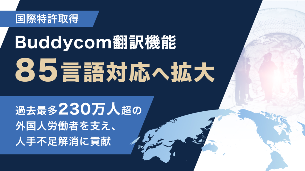 国際特許取得のBuddycom翻訳機能、85言語対応へ拡大~過去最多230万人超の外国人労働者を支え、人手不足解消に貢献~